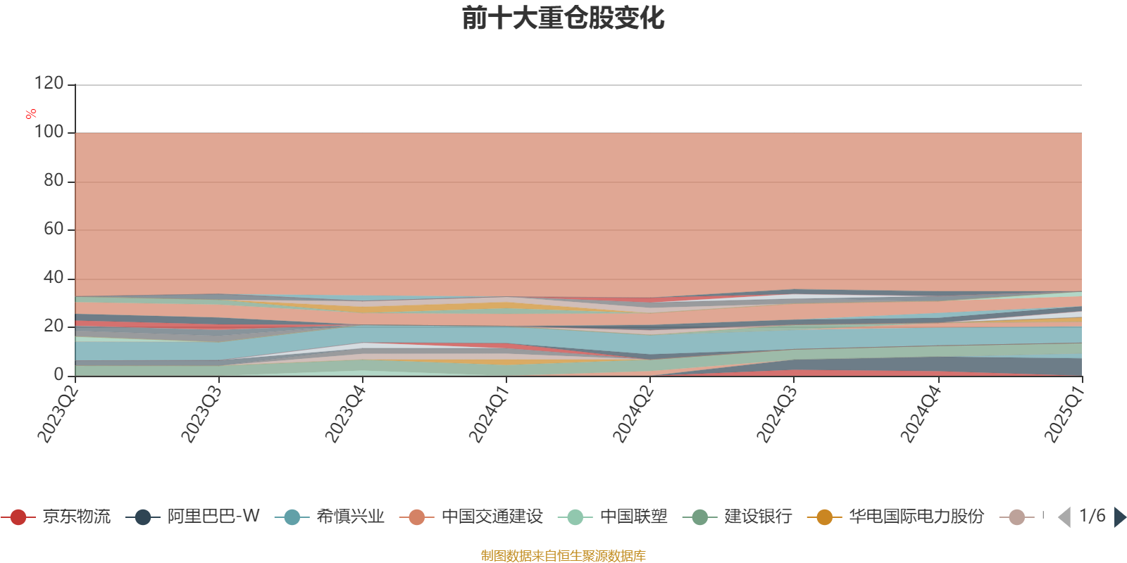 截至2025年一季度末,基金十大重仓股分别是阿里巴巴-W、腾讯控股、建设银行、美团-W、三生制药、希慎兴业、招商银行、新华保险、吉利汽车、中国龙工。