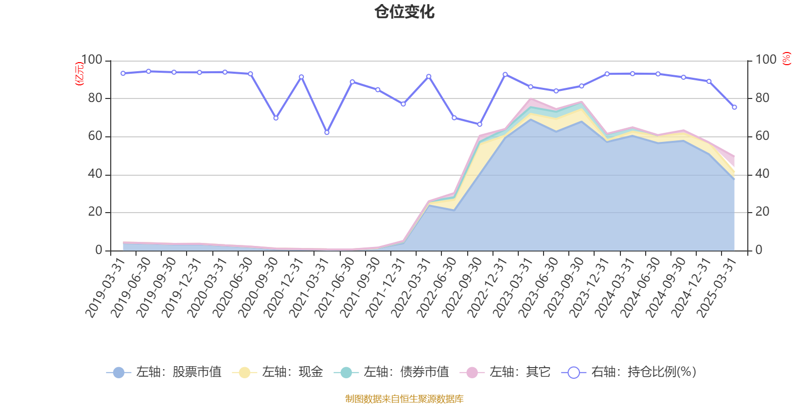 据定期报告数据统计,近三年平均股票仓位为85.09%,同类平均为83.49%。2019年上半年末基金达到94.37%的最高仓位,2021年一季度末最低,为62.22%。