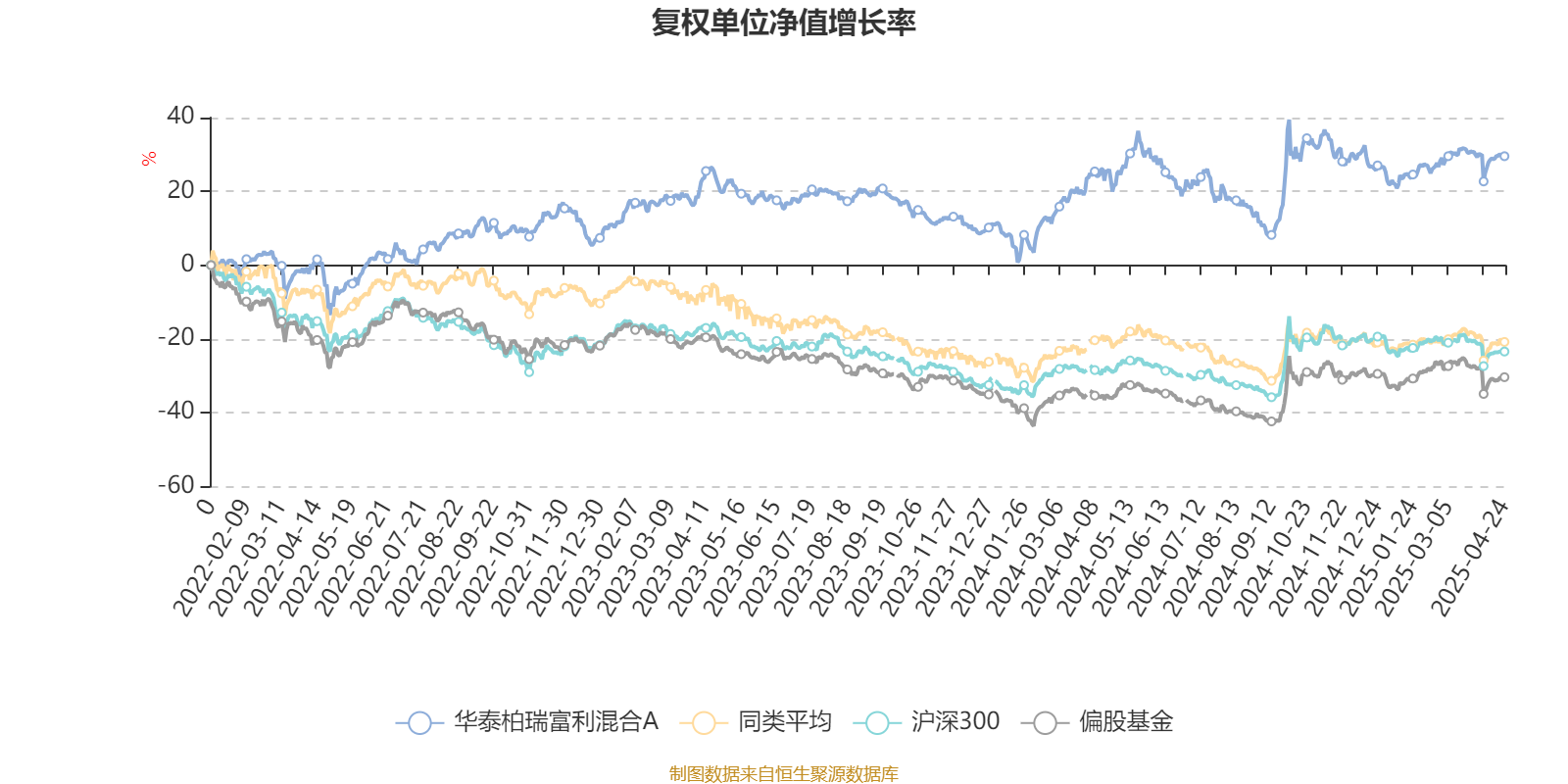 截至4月24日,华泰柏瑞富利混合A近三个月复权单位净值增长率为4.00%,位于同类可比基金21/91;近半年复权单位净值增长率为-2.41%,位于同类可比基金49/91;近一年复权单位净值增长率为6.44%,位于同类可比基金24/91;近三年复权单位净值增长率为36.76%,位于同类可比基金7/66。