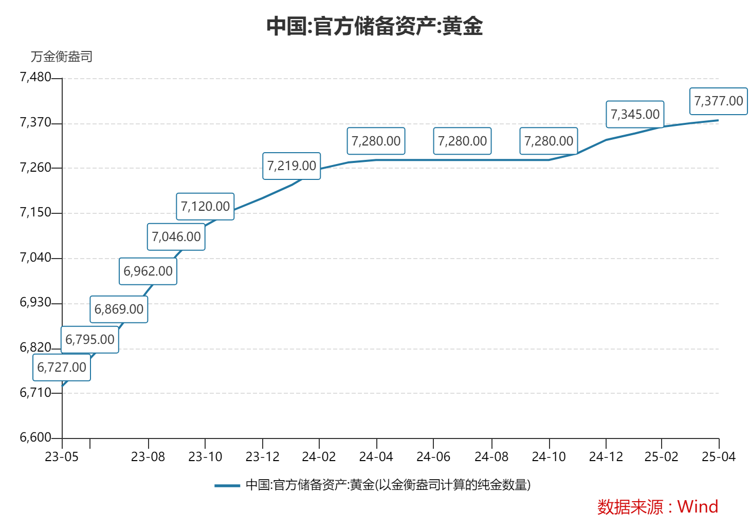 2025年4月末,官方黄金储备连续第6个月增加。专家分析,在国际金价大幅上行,叠创历史新高的背景下,近期央行持续增持黄金,主要原因是全球政治、经济形势出现新变化,国际金价有可能在相当长一段时间内易涨难跌。