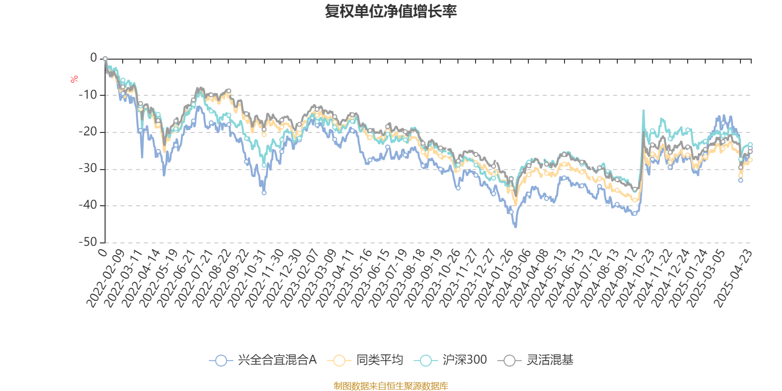 截至4月23日,兴全合宜混合A近三个月复权单位净值增长率为5.02%,位于同类可比基金153/918;近半年复权单位净值增长率为4.14%,位于同类可比基金159/918;近一年复权单位净值增长率为22.68%,位于同类可比基金102/918;近三年复权单位净值增长率为5.16%,位于同类可比基金205/901。