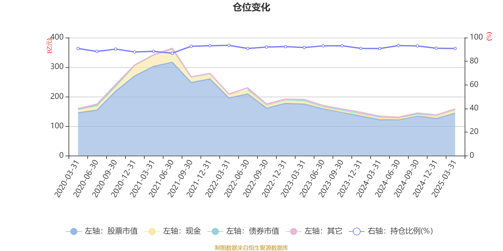 据定期报告数据统计,近三年平均股票仓位为91.91%,同类平均为80.16%。2022年一季度末基金达到93.47%的最高仓位,2021年上半年末最低,为86.87%。