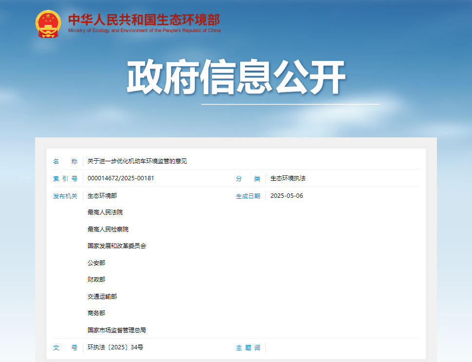 日前,由生态环境部、最高人民法院、最高人民检察院、国家发展和改革委员会等9部门联合编制的《关于进一步优化机动车环境监管的意见》(以下简称《意见》)正式发布。《意见》中提及,要强化机动车排放检验机构准入管理、加快修订机动车国六排放标准、研究制订在用车OBD检测方法等,并对推动合规达标和污染减排等作出了相关规定。