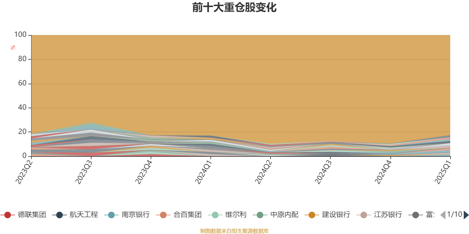 截至2025年一季度末,基金十大重仓股分别是物产中大、中远海控、陕建股份、安徽建工、长江电力、工商银行、中国建筑、江苏银行、南京银行、农业银行。