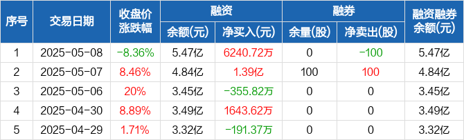 天源迪科融资融券信息显示,2025年5月8日融资净买入6240.72万元;融资余额5.47亿元,较前一日增加12.89%。