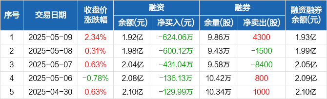 蓝焰控股融资融券信息显示,2025年5月9日融资净偿还624.06万元;融资余额1.92亿元,创近一年新低,较前一日下降3.15%。