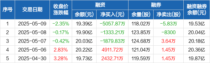 网宿科技融资融券信息显示,2025年5月9日融资净偿还5057.87万元;融资余额19.39亿元,较前一日下降2.54%。