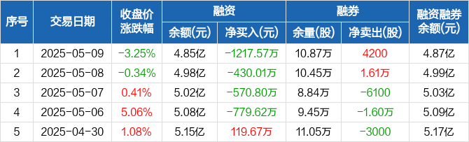 迪安诊断融资融券信息显示,2025年5月9日融资净偿还1217.57万元;融资余额4.85亿元,较前一日下降2.45%。