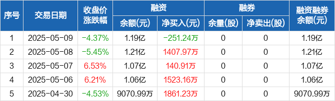 聚赛龙融资融券信息显示,2025年5月9日融资净偿还251.24万元;融资余额1.19亿元,较前一日下降2.07%。