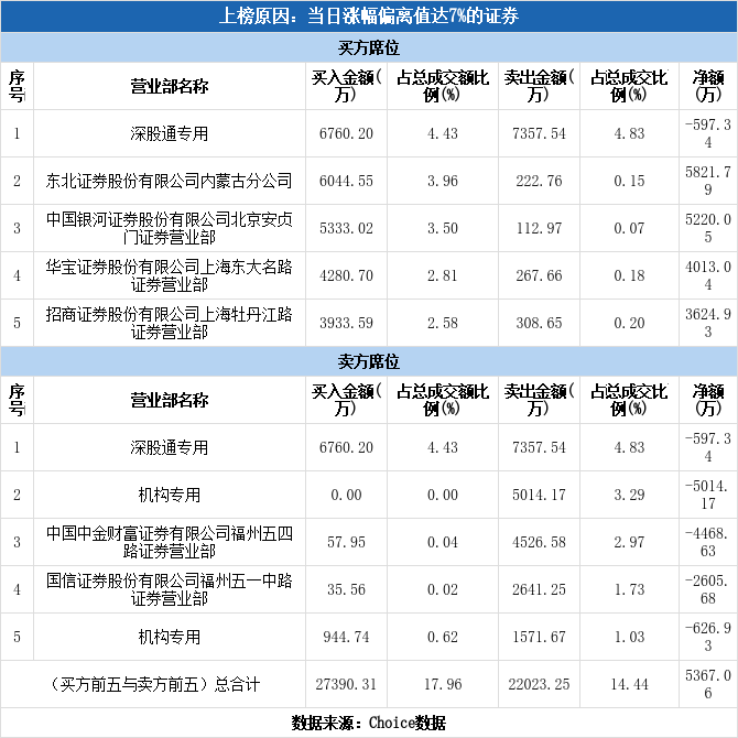 今日龙虎榜单上出现了深股通的身影,占据了买一、卖一的位置,净卖出597.34万元,占当日成交总额的0.39%。