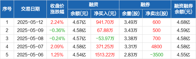 中曼石油融资融券信息显示,2025年5月12日融资净买入941.7万元;融资余额4.67亿元,较前一日增加2.06%。