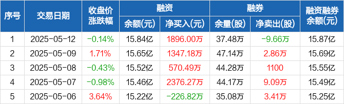 中油资本融资融券信息显示,2025年5月12日融资净买入1896万元;融资余额15.84亿元,较前一日增加1.21%。