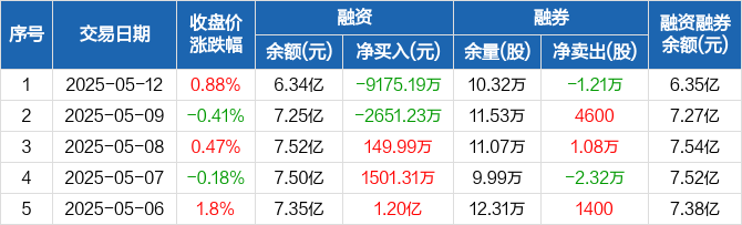 宁波华翔融资融券信息显示,2025年5月12日融资净偿还9175.19万元;融资余额6.34亿元,较前一日下降12.65%。