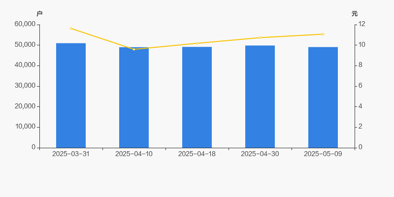 截至2025年5月9日,公司最新总股本为6.87亿股,其中流通股本为4.69亿股。户均持有流通股数量由上期的9417股上升至9562股,户均流通市值10.58万元。