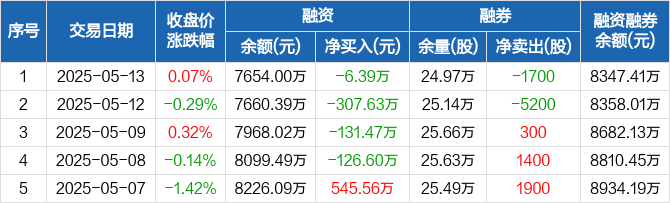 益丰药房融资融券信息显示,2025年5月13日融资净偿还6.39万元;融资余额7654万元,较前一日下降0.08%。