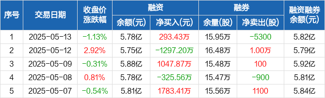 纳思达融资融券信息显示,2025年5月13日融资净买入293.43万元;融资余额5.78亿元,较前一日增加0.51%。