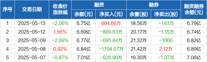 易华录融资融券信息显示,2025年5月13日融资净买入604.66万元;融资余额6.75亿元,较前一日增加0.9%。