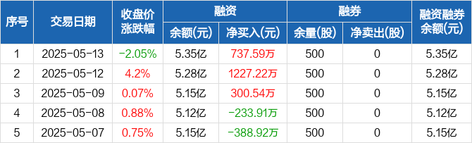 元力股份融资融券信息显示,2025年5月13日融资净买入737.59万元;融资余额5.35亿元,较前一日增加1.4%。
