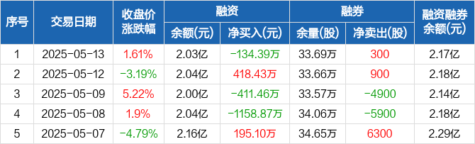 新诺威融资融券信息显示,2025年5月13日融资净偿还134.39万元;融资余额2.03亿元,较前一日下降0.66%。