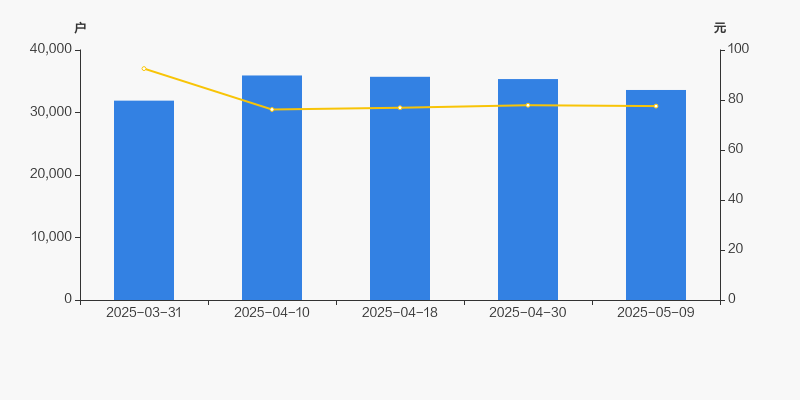 截至2025年5月9日,公司最新总股本为4.16亿股,其中流通股本为1.16亿股。户均持有流通股数量由上期的3280股上升至3450股,户均流通市值26.76万元。