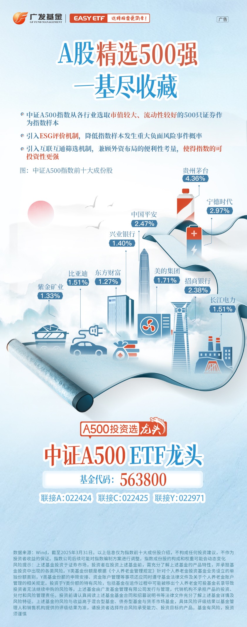 场外投资者可以通过中证A500ETF龙头的联接基金(A类022424;C类022425;Y类022971)布局优质资产上行机遇。