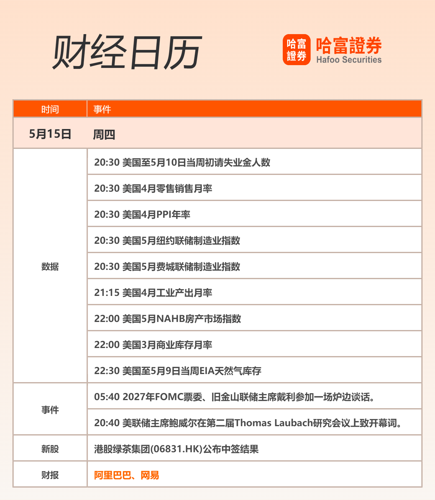 财经日历: