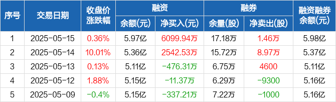 红塔证券融资融券信息显示,2025年5月15日融资净买入6099.94万元;融资余额5.97亿元,较前一日增加11.38%。
