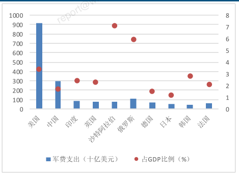 当前国内正处于“十四五”的收官之年,此前积压的国防建设任务需要完成,另外还有2027年建军百年及2035年国防现代化等中长期目标,未来军工板块装备建设需求有望得到释放。此外,我国军费占GDP比重低于世界主要军事大国的平均水平,国防支出仍有较大增长空间。