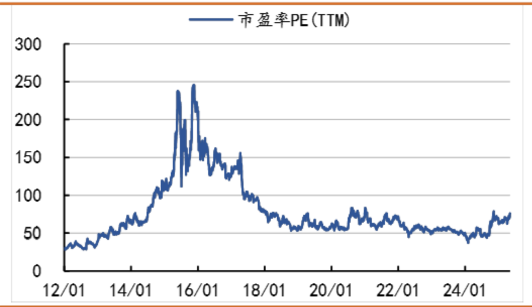 2012年以来军工行业PE走势