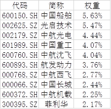 中证军工指数前十大成分股