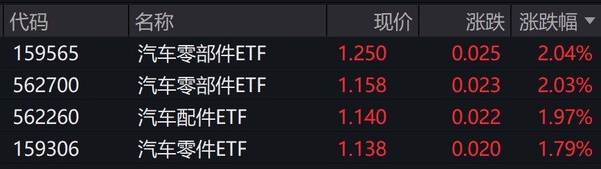 汽车配件概念股走强,汽车零部件ETF涨超2%