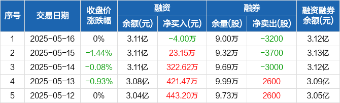 盾安环境融资融券信息显示,2025年5月16日融资净偿还4万元;融资余额3.11亿元,较前一日下降0.01%。