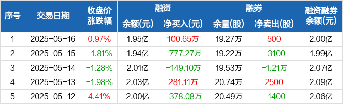 海信家电融资融券信息显示,2025年5月16日融资净买入100.65万元;融资余额1.95亿元,较前一日增加0.52%。