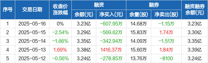 湖南白银融资融券信息显示,2025年5月16日融资净偿还607.95万元;融资余额3.23亿元,较前一日下降1.85%。