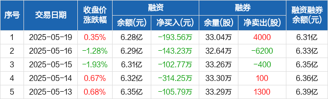 盛新锂能融资融券信息显示,2025年5月19日融资净偿还193.56万元;融资余额6.28亿元,创近一年新低,较前一日下降0.31%。