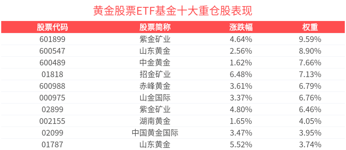 黄金股票ETF基金紧密跟踪中证沪深港黄金产业股票指数,中证沪深港黄金产业股票指数从内地与香港市场中,选取50只市值较大且业务涉及黄金采掘、冶炼、销售的上市公司证券作为指数样本,以反映内地与香港市场中黄金产业上市公司证券的整体表现。