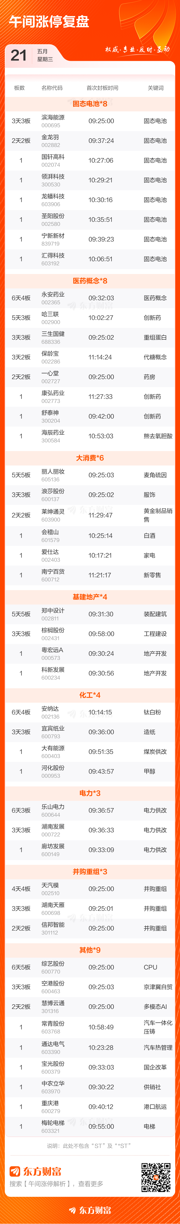 05月21日午间涨停复盘:65股涨停 滨海能源3天3板