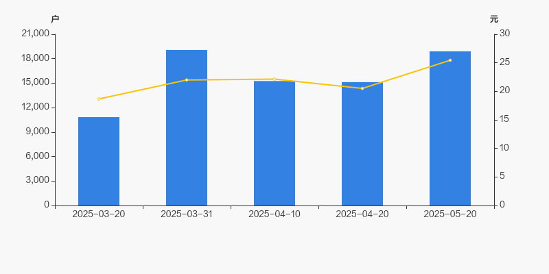 2025年3月20日至今,公司股东户数显著大幅增长,区间涨幅达74.44%。2025年3月20日至2025年5月20日区间股价上涨36.33%。