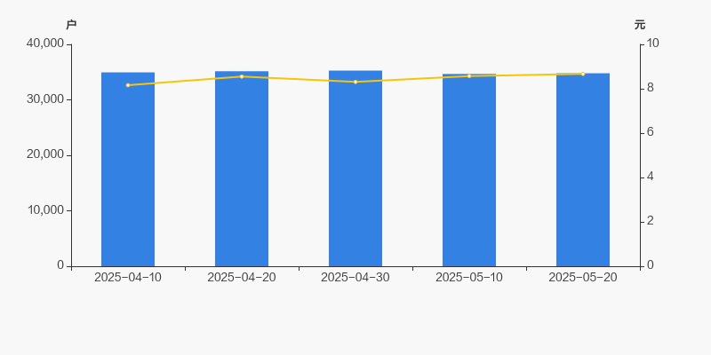 截至2025年5月20日,公司最新总股本为4.39亿股,其中流通股本为4.21亿股。户均持有流通股数量为1.21万股,较上期略有下降;户均流通市值10.49万元。