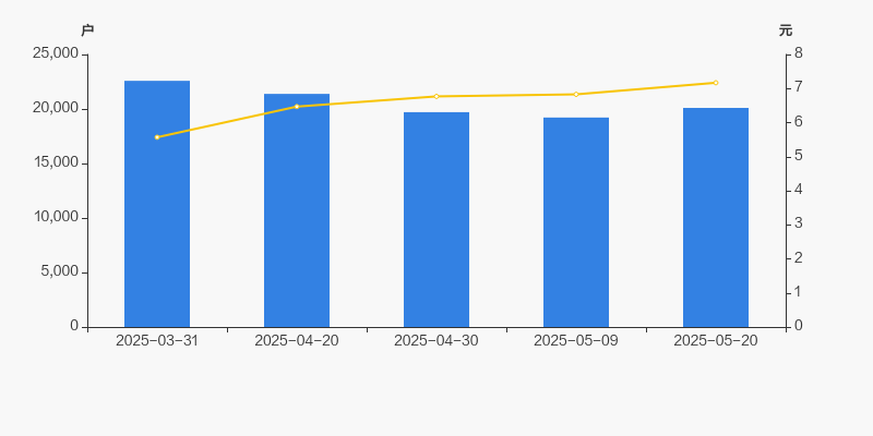 2025年3月31日至今,公司股东户数显著下降,区间跌幅为11.00%。2025年3月31日至2025年5月20日区间股价上涨28.73%。