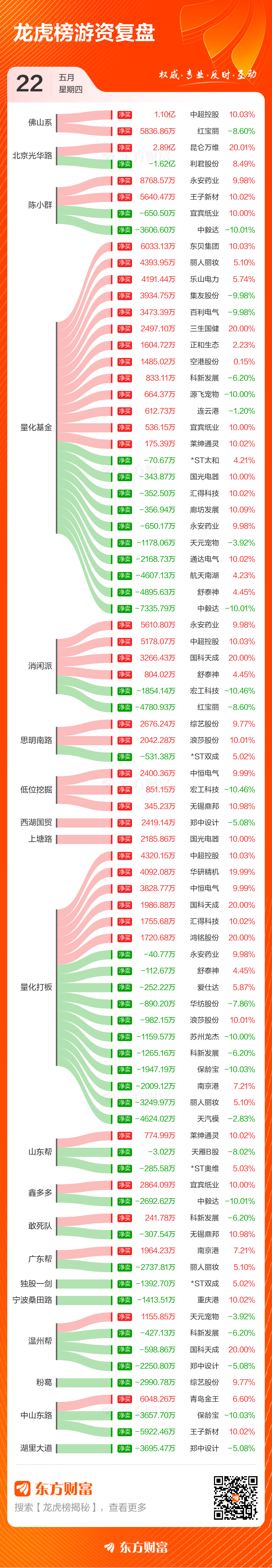 5月22日共有68只个股上榜龙虎榜,总上榜成交额119.96亿元。上榜个股中净买入额最高的是昆仑万维,金额为3.39亿元。