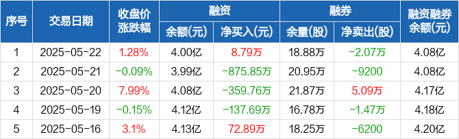 信立泰融资融券信息显示,2025年5月22日融资净买入8.79万元;融资余额4亿元,较前一日增加0.02%。