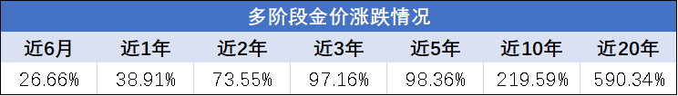 由于黄金具备实物背书,天然不存在交易对手方的违约风险,是避险资产的经典之选。在政治动荡、经济衰退等不确定风险事件发生时往往会大幅上涨。叠加黄金具备抵抗通胀、资产配置的作用,金价历史走势较好。根据Wind数据,截至2025年5月22日,近20年金价涨幅达590.34%。