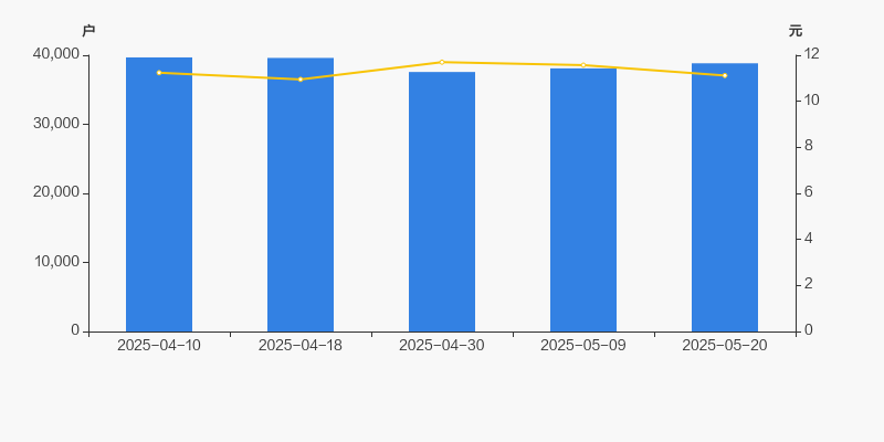 2025年4月10日至今,公司股东户数有所下降,区间跌幅为2.14%。2025年4月10日至2025年5月20日区间股价下降1.04%。