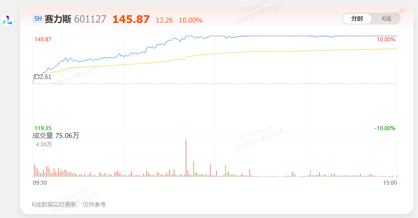 今日收盘赛力斯涨停,可能有以下几个原因:
