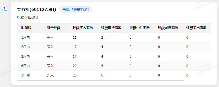 截至2025年5月23日,赛力斯的机构评级情况如下:
