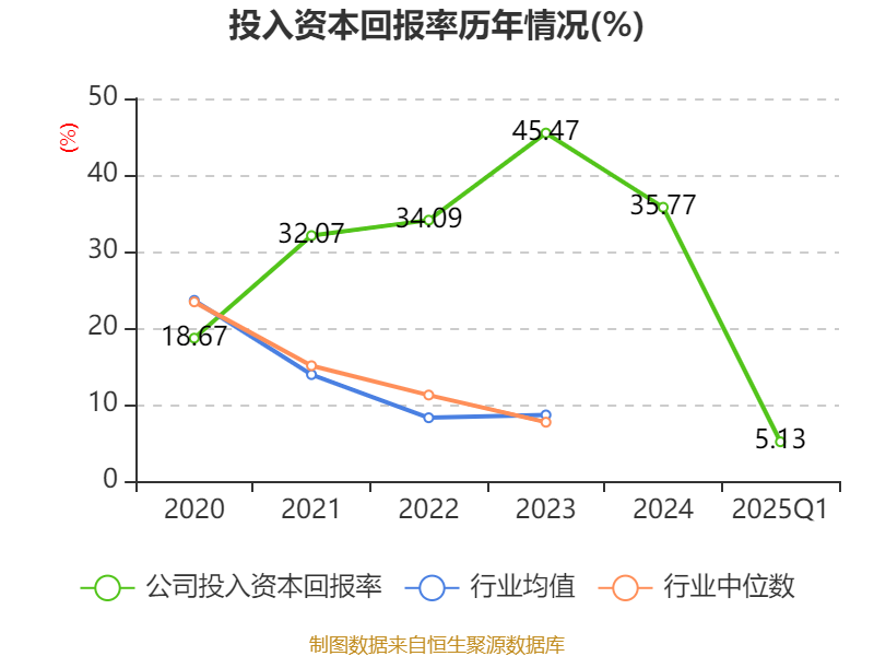 公司2024年投入资本回报率为35.77%,较上年同期下降9.7个百分点。2025年第一季度投入资本回报率为5.13%,较上年同期下降10.83个百分点。