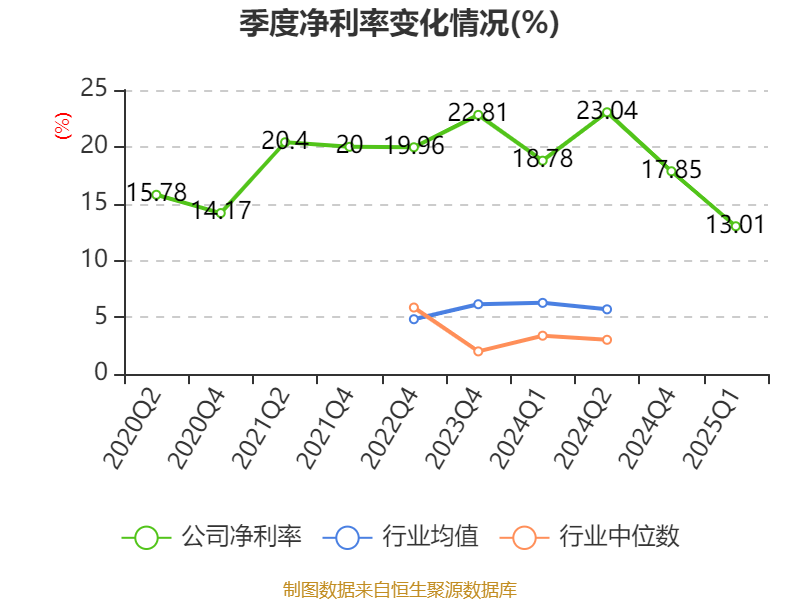 数据显示,2024年公司加权平均净资产收益率为37.07%,较上年同期下降9.6个百分点。2025年一季度公司加权平均净资产收益率为5.39%。