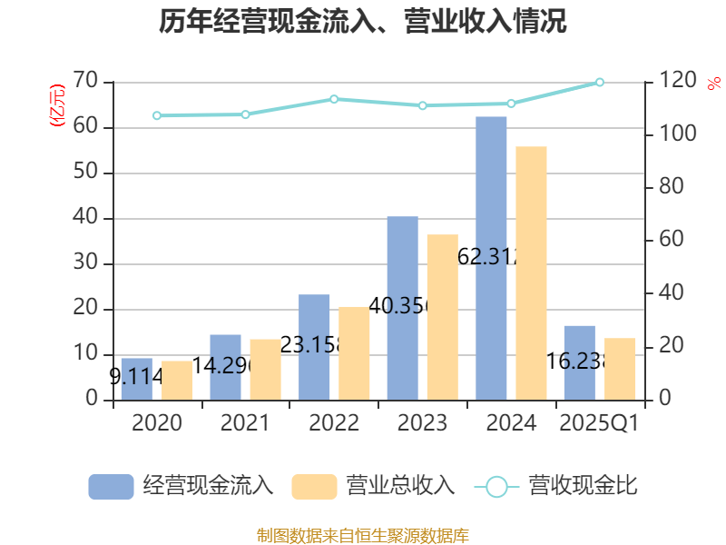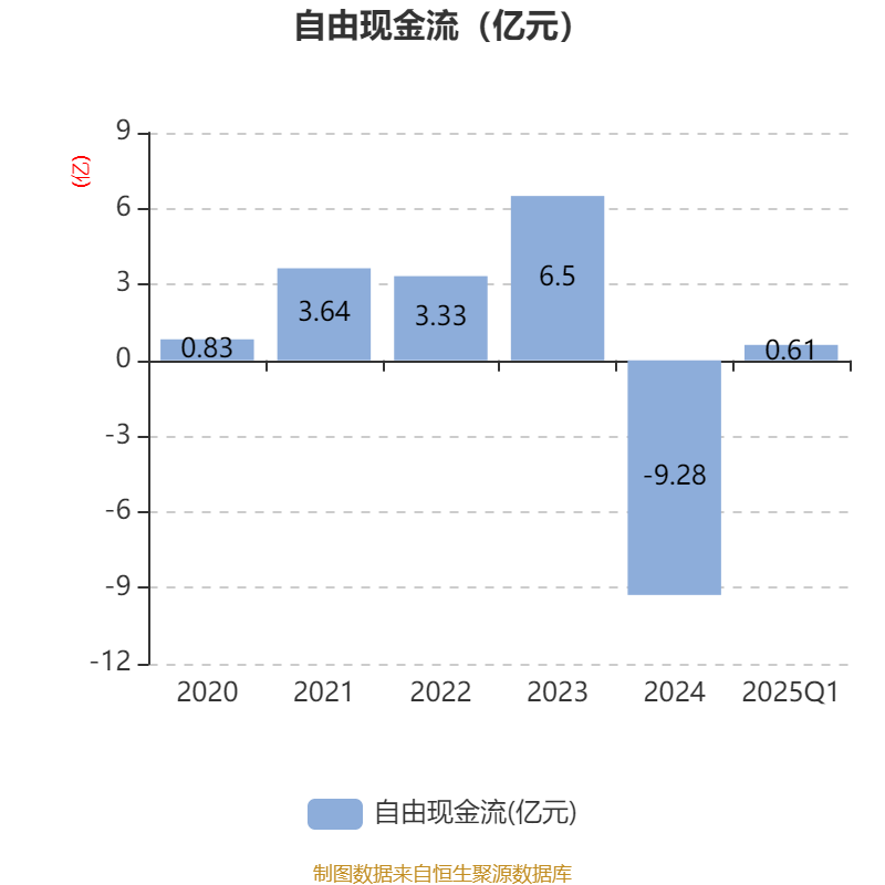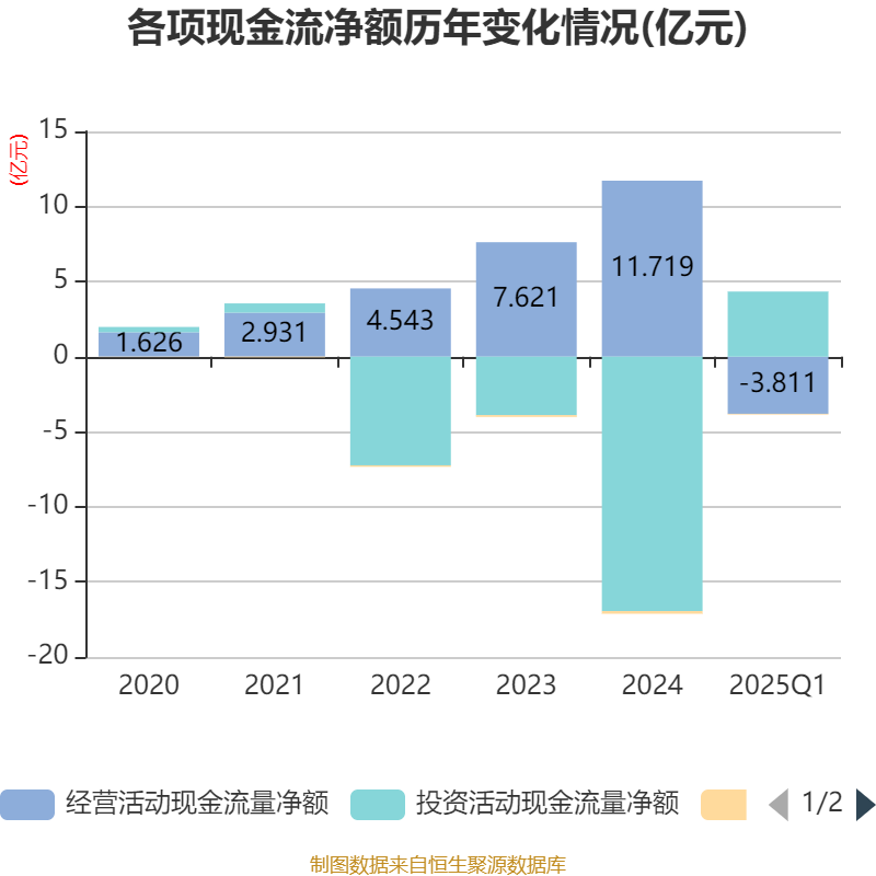 截至2025年一季度末,公司经营活动现金流净额为-3.81亿元,同比减少4.05亿元;筹资活动现金流净额-504.42万元,同比减少95.12万元;投资活动现金流净额4.34亿元,上年同期为-1.05亿元。