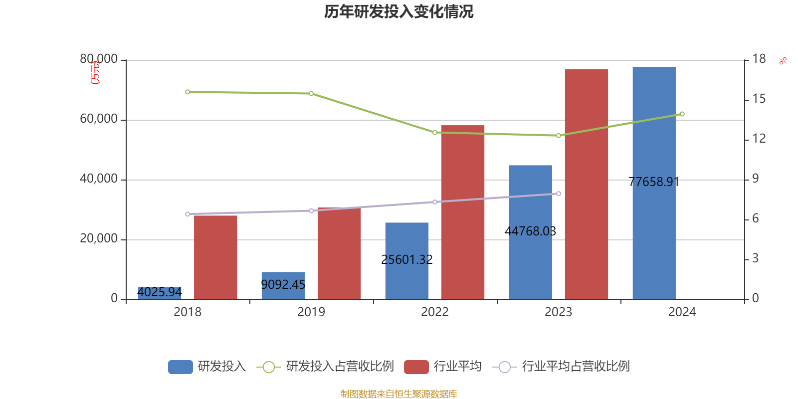 2024年全年,公司研发投入金额为7.77亿元,同比增长73.47%;研发投入占营业收入比例为13.93%,相比上年同期上升1.62个百分点。